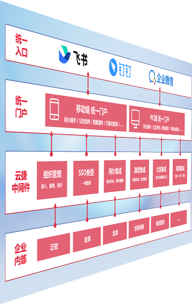 对协作平台提供支持服务,,,支持企业应用与协作平台对接,,包含组织同步、、消息集成、、、、待办集成等。。。支持目前主流的协作平台:钉钉、、、、企微和飞书。。。。